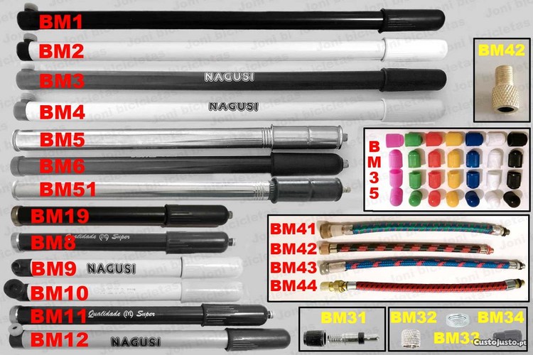 Bombas de ar, válvulas e acessórios p/ bicicleta