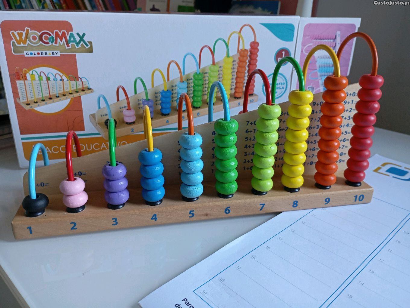 Ábaco didático em madeira + quadro mágico