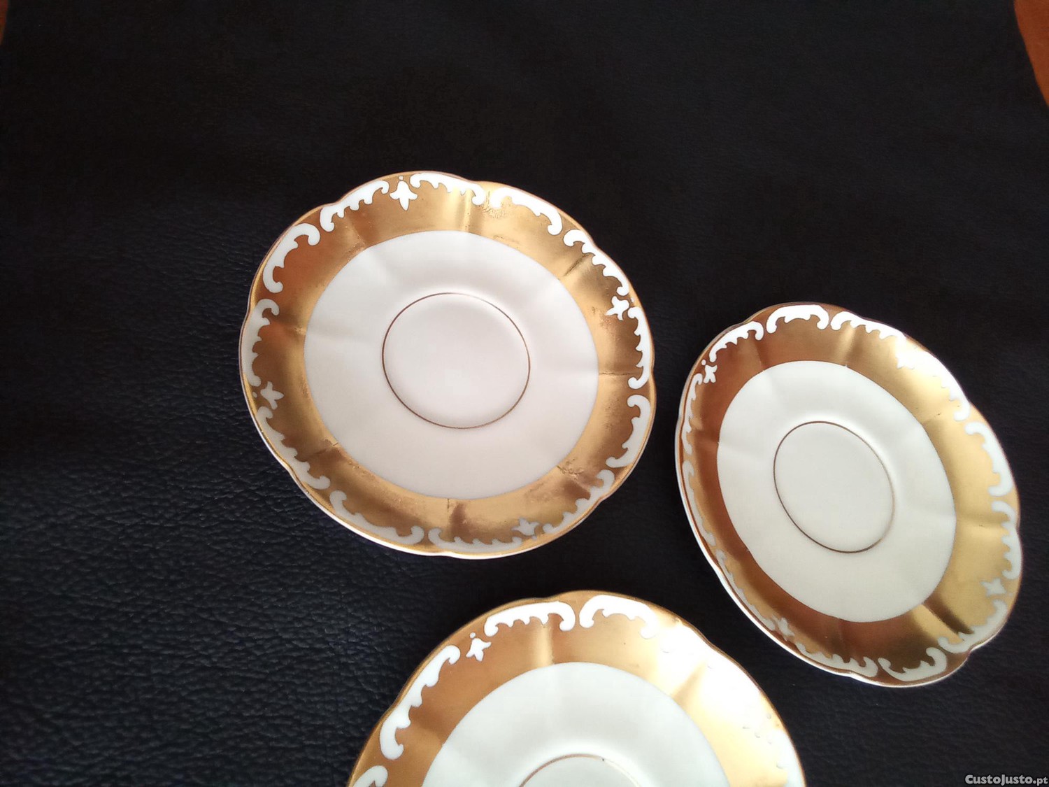 Preço: 6 €3 pires de chávena de café dourados Vista Alegre