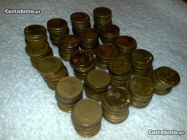 -200 moedas portuguesas de 5$00 escudos de cor amarela, conforme poderá ver nas fotos