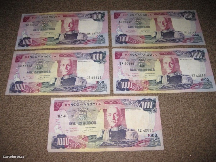 5 Notas de "1000 Escudos" de Angola
