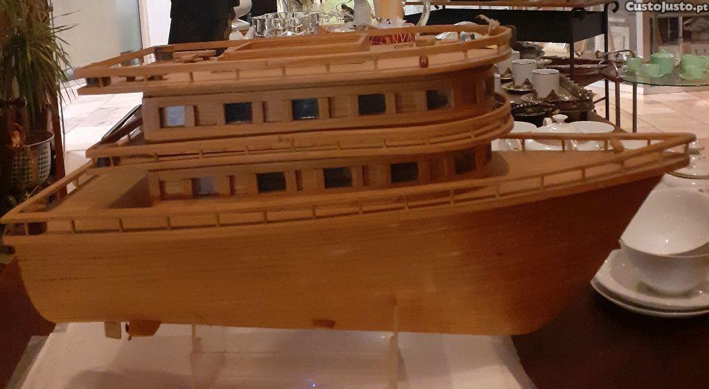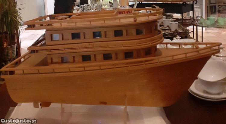 Barco de fabrico artesanal em madeira de balsa com suporte em acrílico, comp.max de 54cm, Alt.max.de 31cm com o suporte.