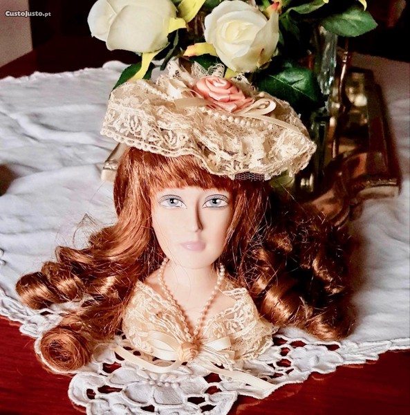 Preço: 35 €Busto boneca antiga em porcelana c/ cabelo natural