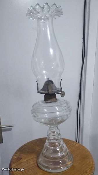 Candeeeiro a petróleo em vidro, com pé cónico