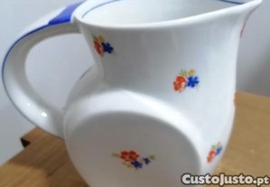 Caneca em porcelana Vista Alegre-1924/47, Art Deco, com decoração floral e filetes azuis.