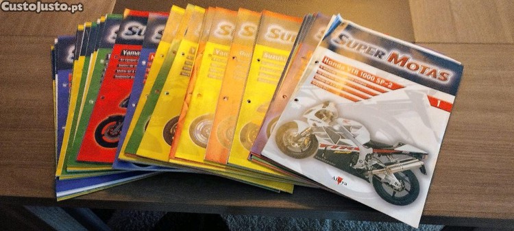 Coleção de Super Motas em miniatura à escala de 1/18, com caixa e com os respectivos fascículos em excelente estado de conservação, do ano de 2002. A coleção de 50 fascículos e motas, encontra-se incompleta, faltando os fascículos 42 e 48, bem como as respectivas motas. Não vendo fascículos e/ou motas em separado. Apenas a coleção na íntegra.
