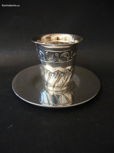 Copo antigo em prata portuguesa com a respectiva base.