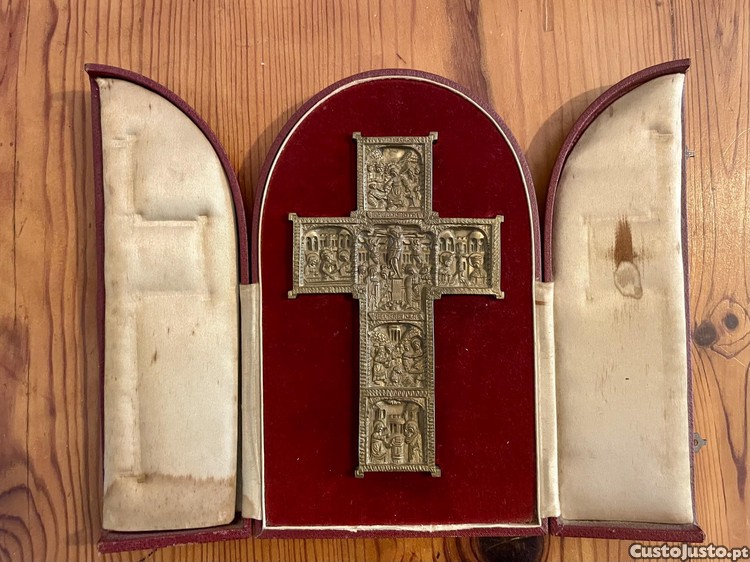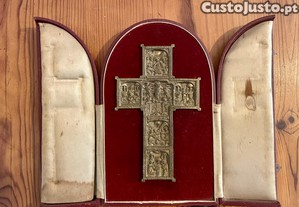 Cruz em bronze Leitão & Irmão. Acompanha respetivo estojo.