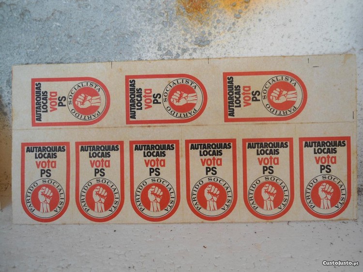 Eleições autarticas anos 80 PS lote de 9 autocolantes