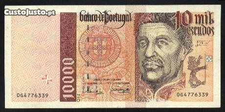 Nota de 10.000$00 chapa 2 de 2/5/1996, com o numero (0 G 4776339), no estado de conservação de (Bela). Estas notas, neste estado de conservação, serão cada dia mais dificeis de encontrar. Por favor veja as imagens. Custos de envio 5 euro para uma ou mais peças de colecção.