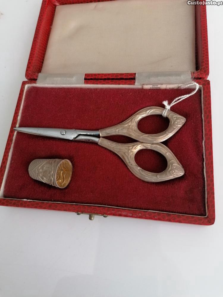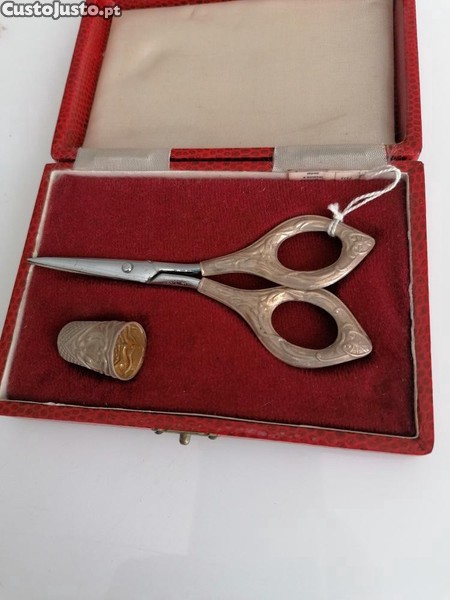 Preço: 45 €Estojo com tesoura e dedal em prata