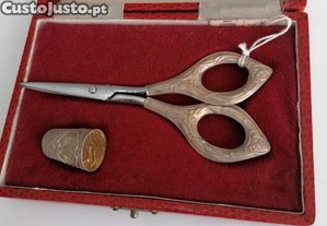 Estojo com tesoura e dedal em prata