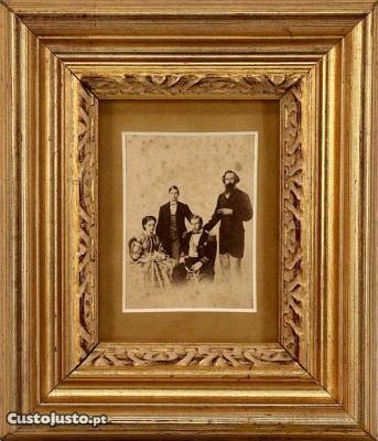 Família Real Portuguesa - fotografia de Francisco Augusto Gomes, fotógrafo de suas majestades, 1862, retrato da "família real portuguesa - Rainha D. Maria pia, Rei D. Luís I, D. Fernando II (pai) e o infante D. Augusto". Verso com armas reais.