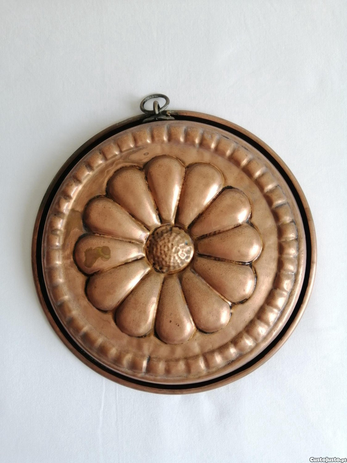 Forma grande para bolos em cobre com argola de suspensão.