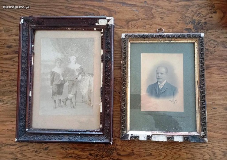 Conjunto de duas fotos do famoso e conhecido fotógrafo (e estúdio fotográfico) do Porto, de Karl Emil Biel. Ambas as molduras apresentam várias falhas, faltas e defeitos. Admito que as fotos possam ser dos finais do séc. XIX ou princípios do séc. XX.