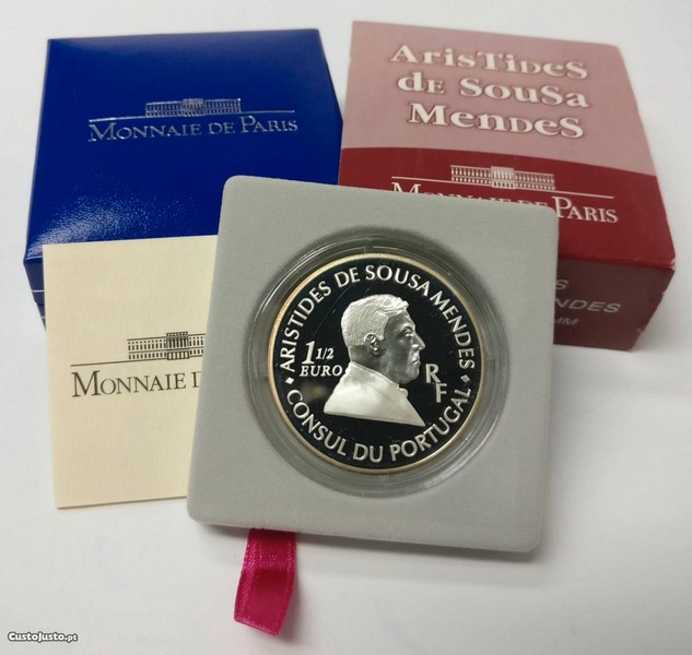 Preço: 90 €França - - - 1 ½ Euro -2007- "Aristides de Sousa Mendes" - - - - - Moeda de Prata