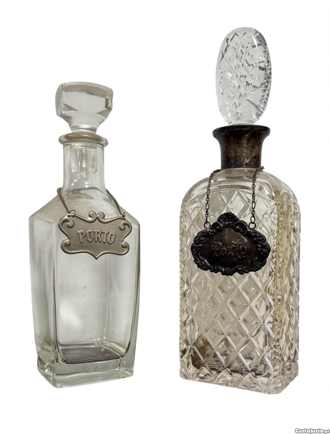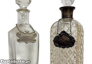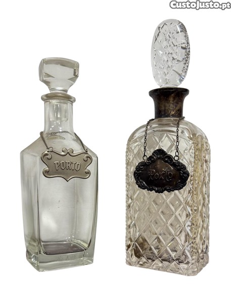 Garrafas de cristal e vidro.