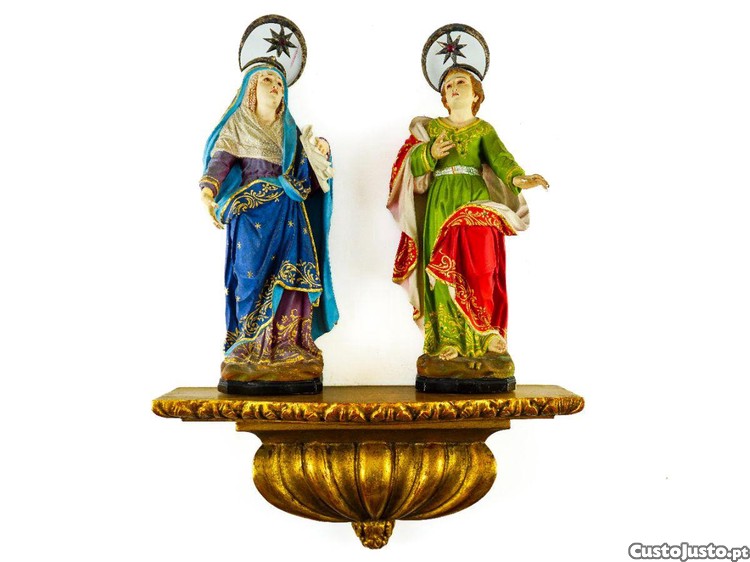 Imagens de Calvário em madeira com olhos de vidro - Nossa Senhora e São João Evangelista.