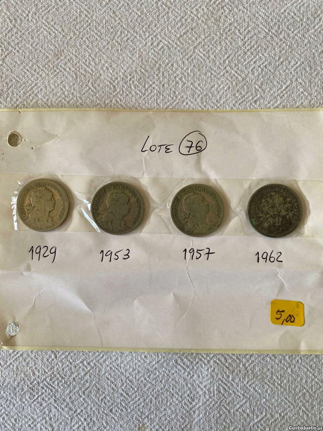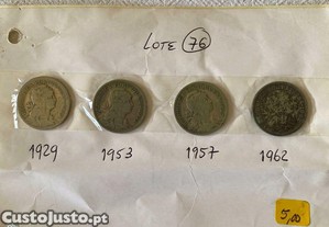 Lote de 4 moedas de 50 centavos dos anos de 1929, 1953, 1957 e 1962. Portes da conta do comprador e pagamento antecipado.