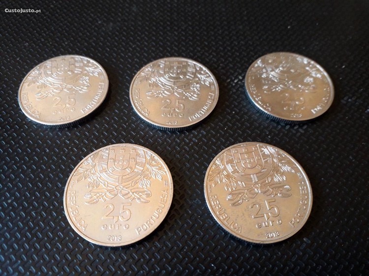 Lote de 5 moedas de 2,5 euros