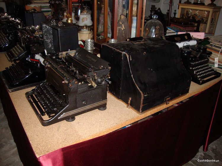 Várias máquinas de escrever antigas.