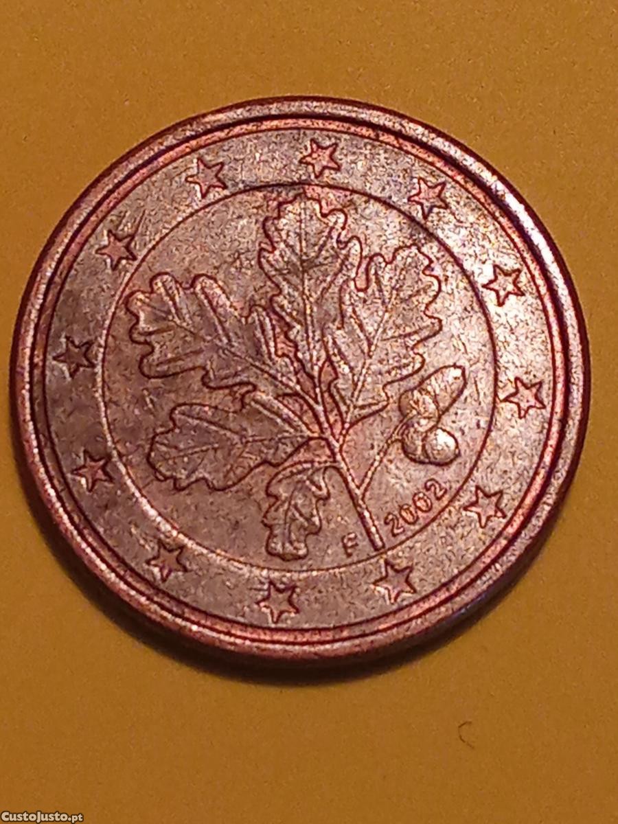Vendo moeda de 1 cêntimos Alemã de 2002 letra F. Estado muito bom.