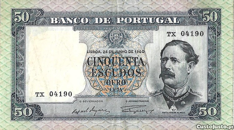 Preço: 40 €Nota de 50 escudos 1960