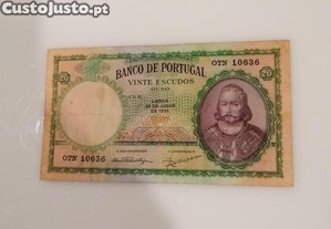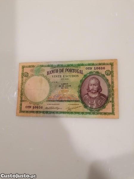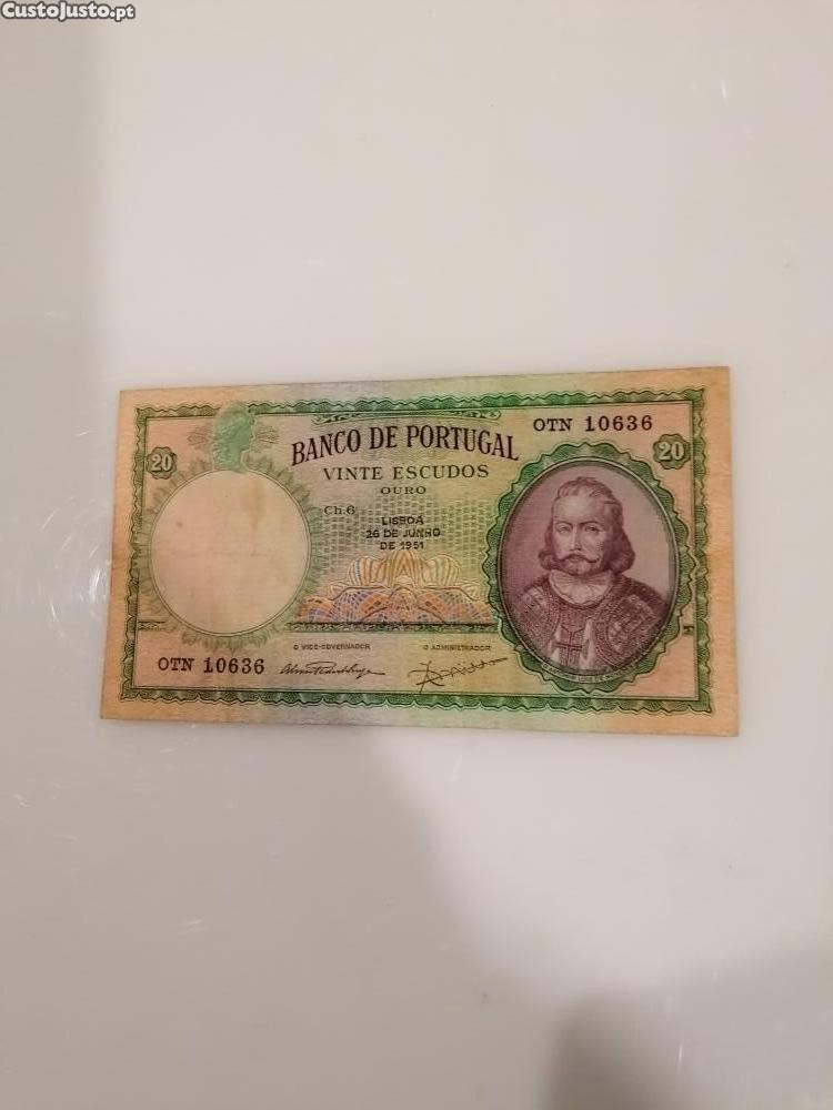 Preço: 105 €Nota de vinte escudos, 26 de Junho de 1951