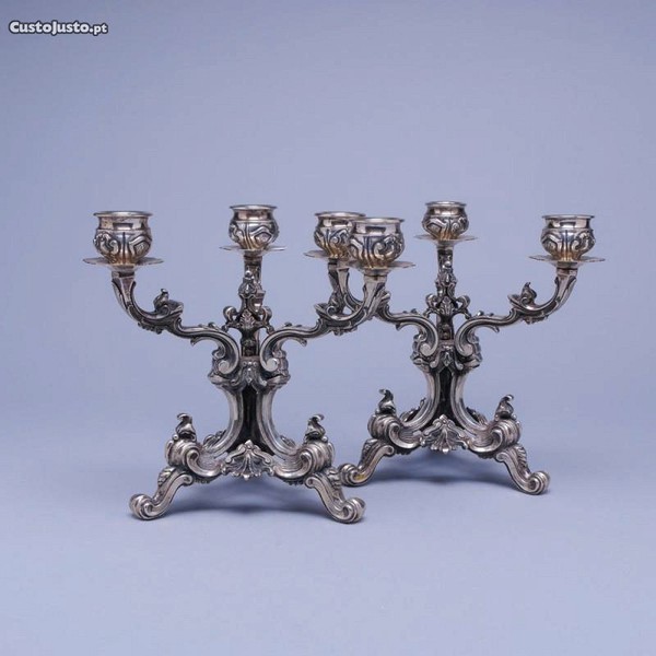 Preço: 1 200 €Par de Candelabros antigos de 3 lumes em prata