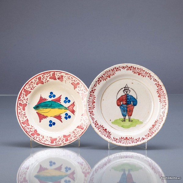 Em faiança portuguesa, decoração policromada "peixe" e "palhaço".