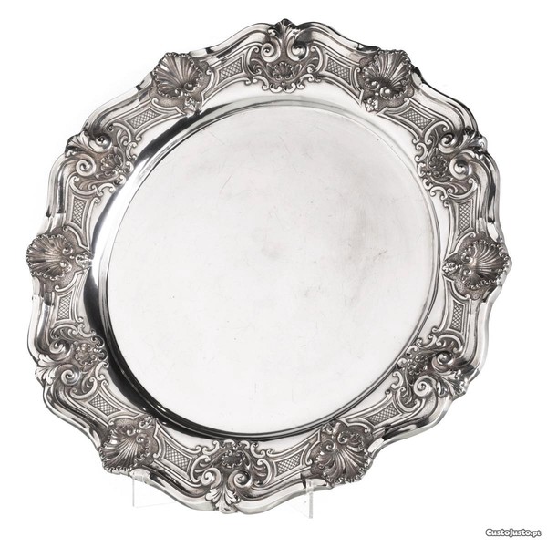 Salva de Grandes dimensões, antiga em prata Portuguesa, decoração em relevo com motivos vegetalistas.