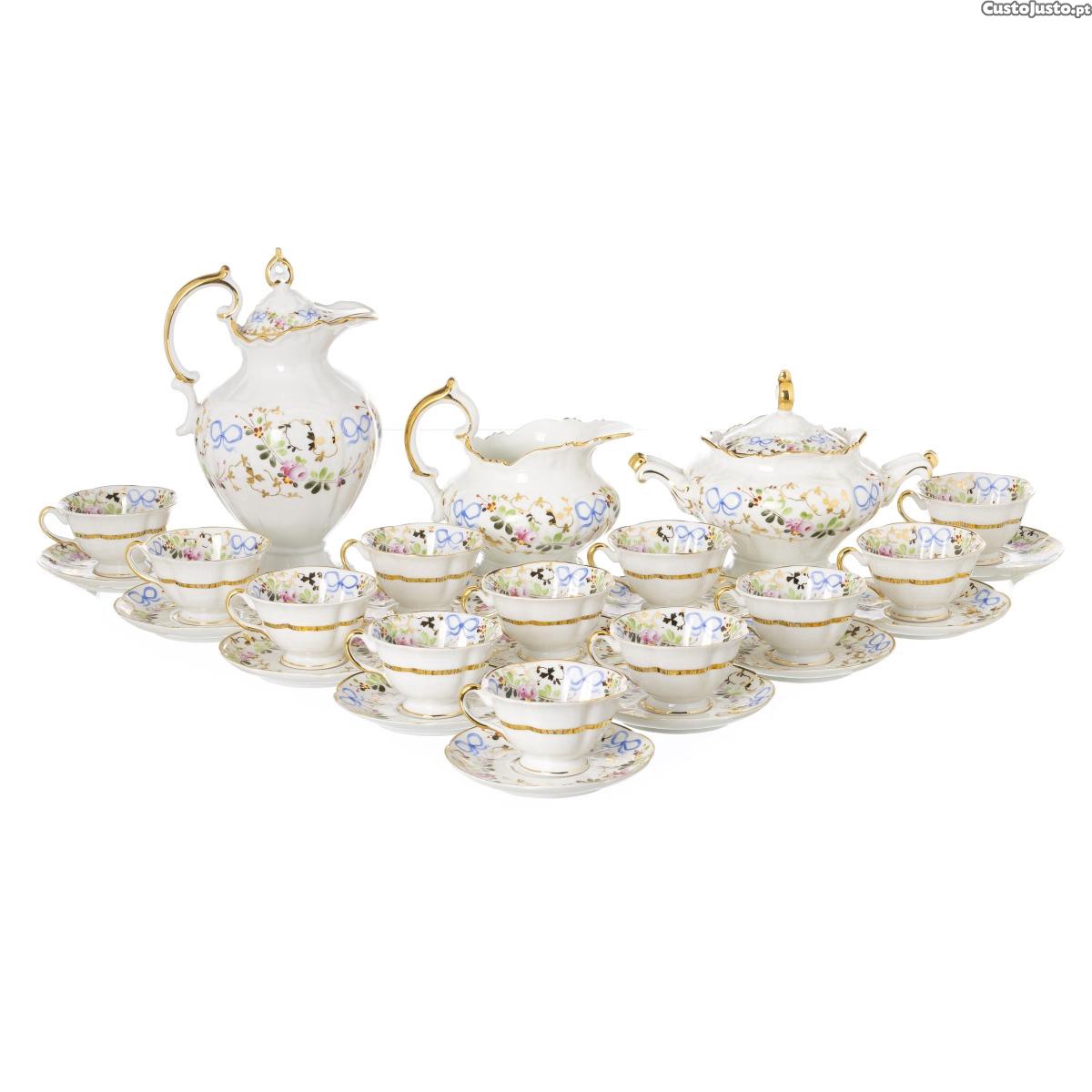 Composto por: cafeteira, leiteira, açucareiro de 12 chávenas com pires. Marca N 29 (1922-1947).