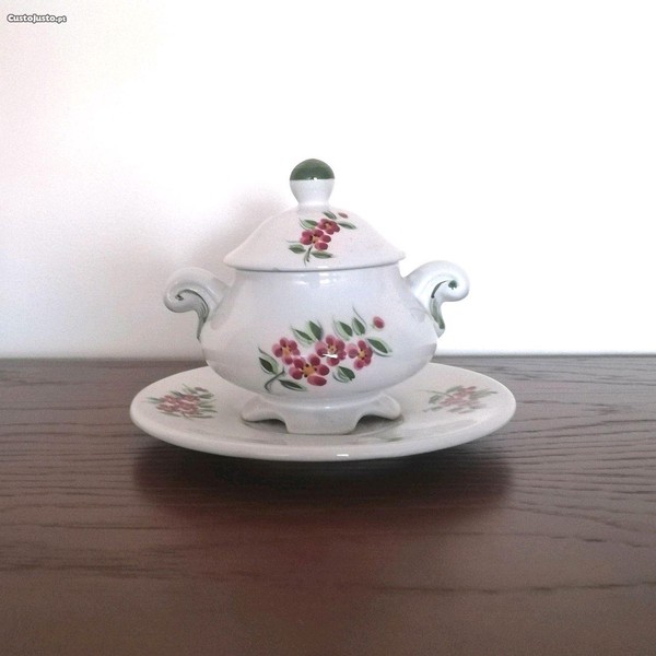 Terrina e prato vintage, com motivos florais.