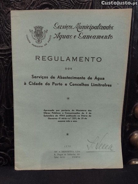 Regulamento dos serviços de abastecimento de água a cidade do Porto e concelhos limítrofes 1958