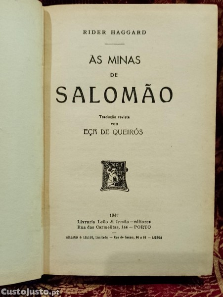 Preço: 8 €As Minas de Salomão 1947 Rider Haggard