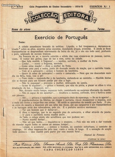 Colecção Editora 2 Conjuntos de exercícios de Português para o 2 ano do ensino liceal - 1974/75 - total de 19 exercícios, sem rasgos ou riscos RARÍSSIMOS neste estado,
