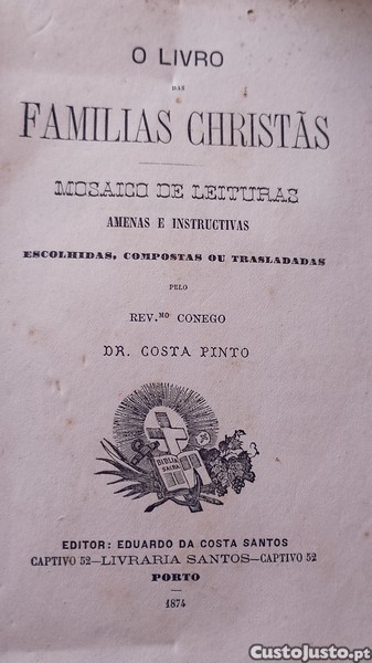 O Livro das Famílias Christãs 1874 Rev, Conego Dr. Costa Pinto