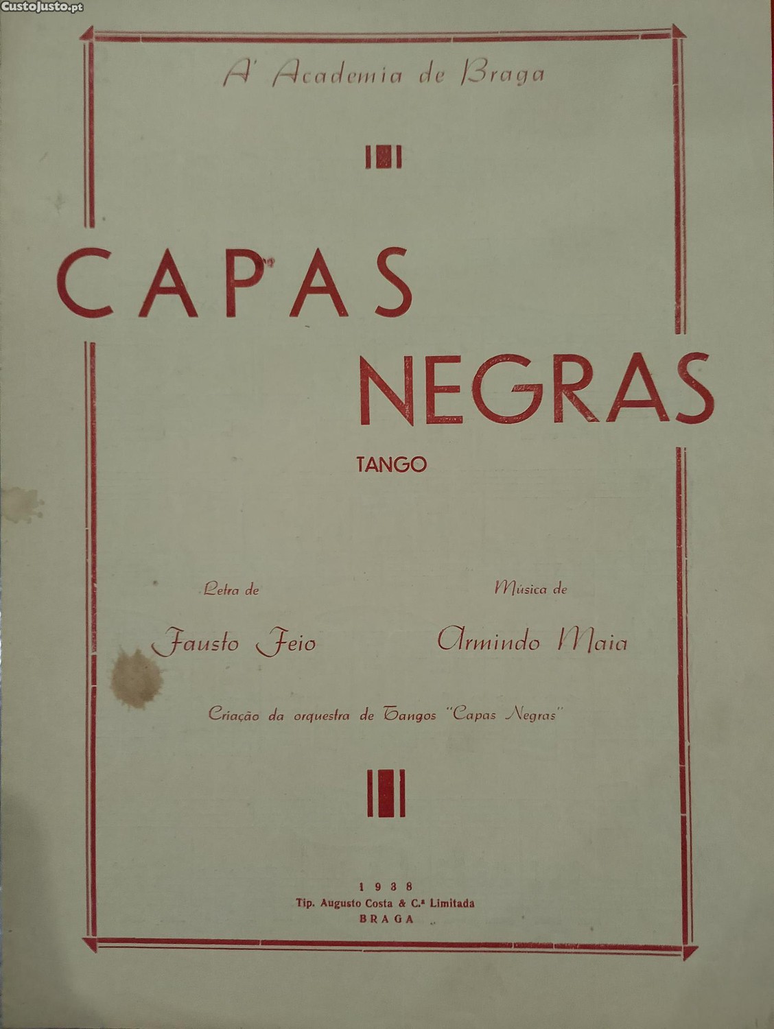 Preço: 15 €Partitura: Capas Negras - Armindo Maia (1938)