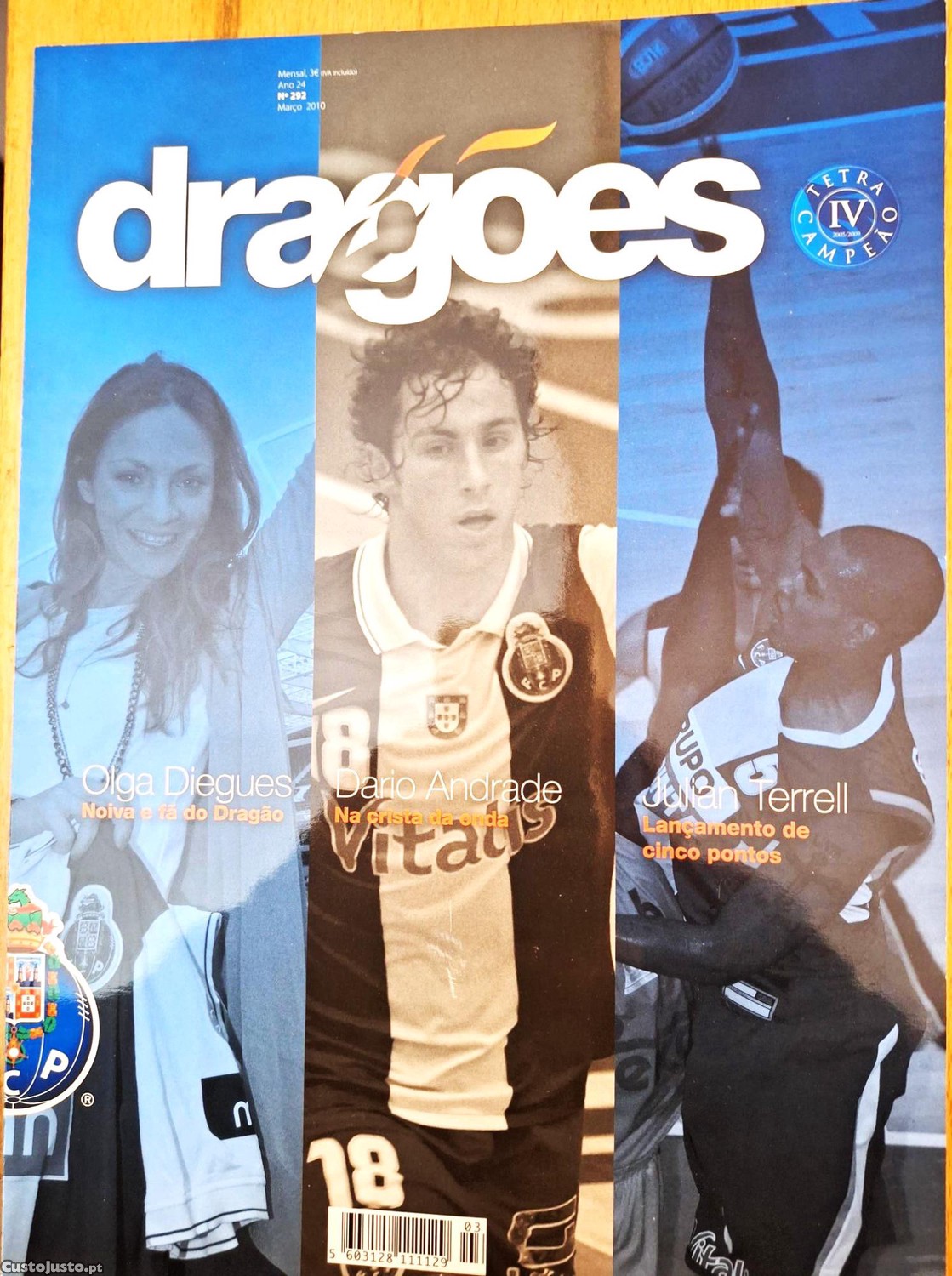 Revista Dragões nº. 292, Julian Terrel lançamento de cinco pontos, Olga Diegues noiva e fã do Dragão, Dario Andrade na crista da onda, de Março 2010.