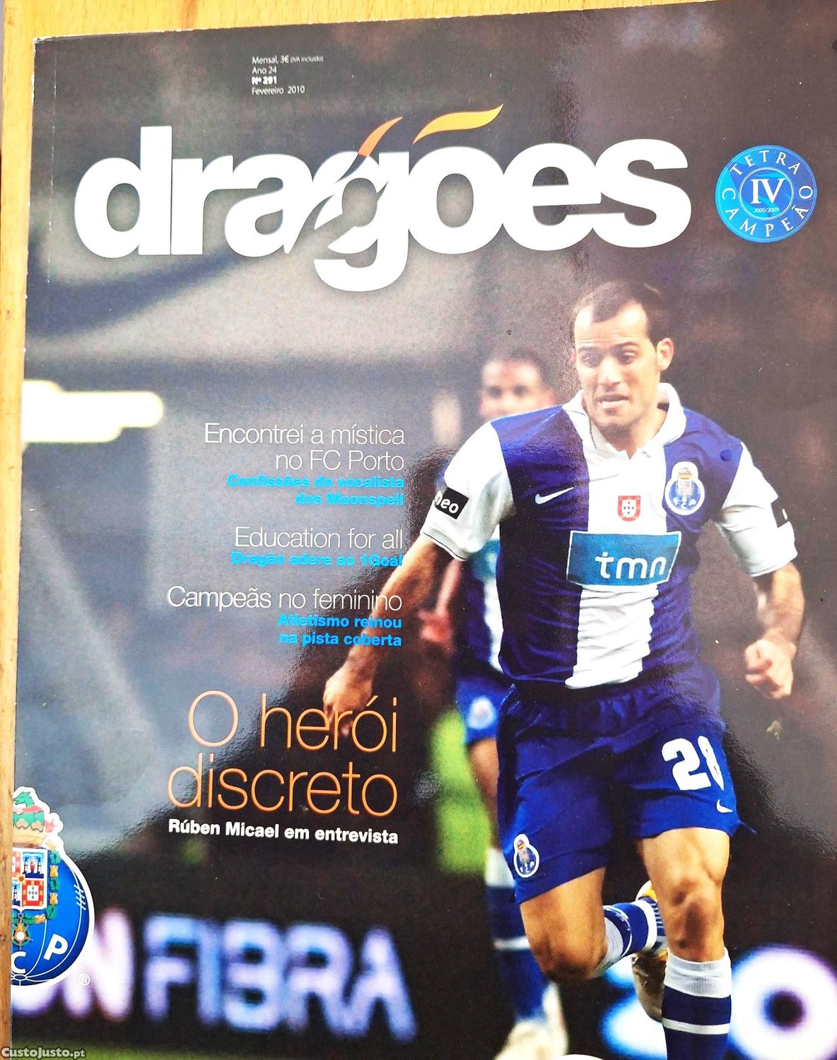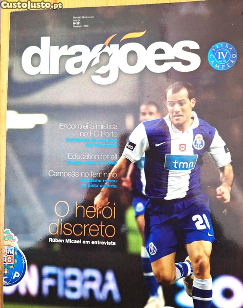 Revista Dragões nº. 291, "O Herói discreto Ruben Micael em entrevista", "Encontrei a mística no FCPorto Confissões do vocalista dos Moonspell", "Education for all Dragão adere ao 1Goal", "Campeãs no feminino Atletismo reinou na pista coberta", de Fevereiro 2010.