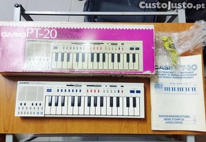 Casio PT-20 Eletronic Musical Instrument vintage a funcionar com caixa e manual