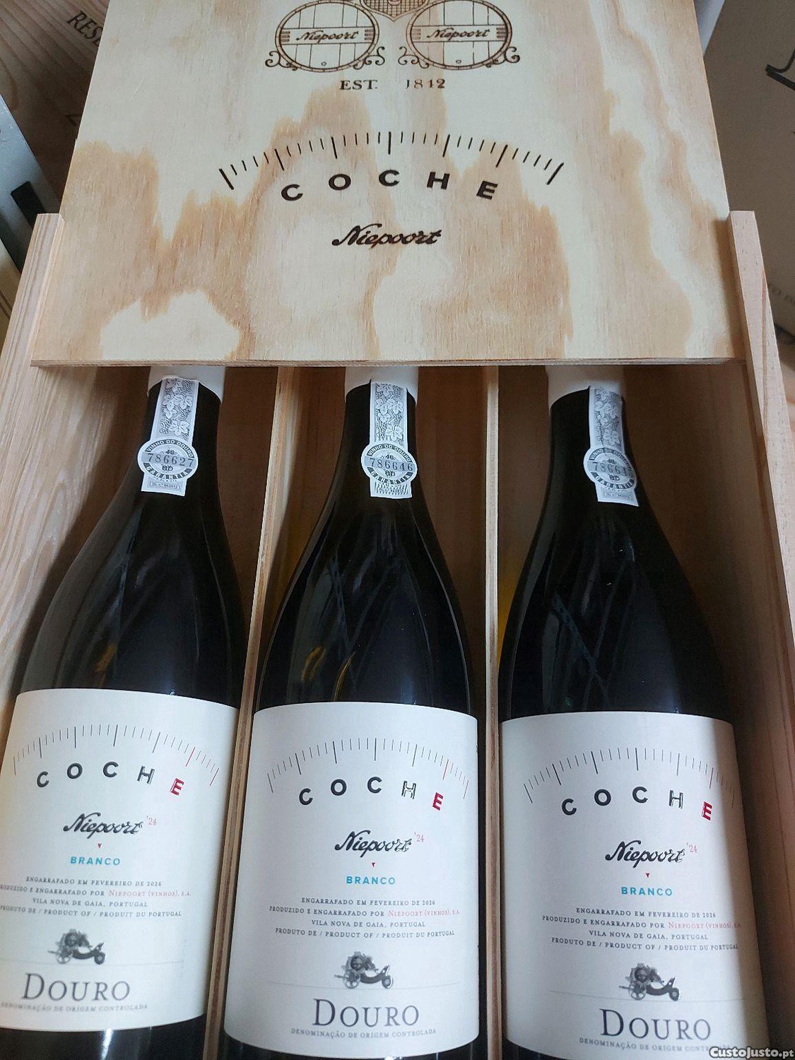 caixa madeira tres garrafas coche 300