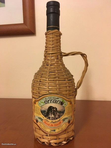 Vendo garrafa de licor Serrano oriundo da serra da estrela e empalhado , antigo mas em estado irrepreensível..