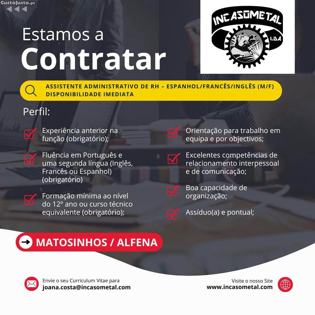 Assistente Administrativo de RH Espanhol/Francês/Inglês (M/F) Disponibilidade imediata