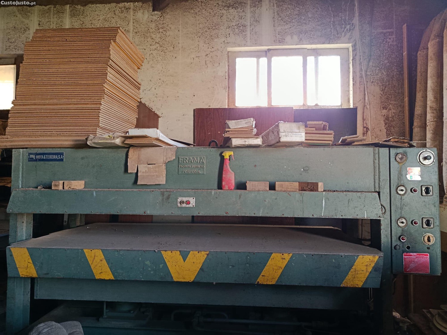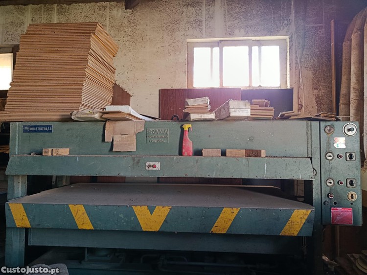 Vende-se prensa hidráulica FRAMA PE 2500, máquina industrial robusta e fiável, ideal para carpintaria e produção.