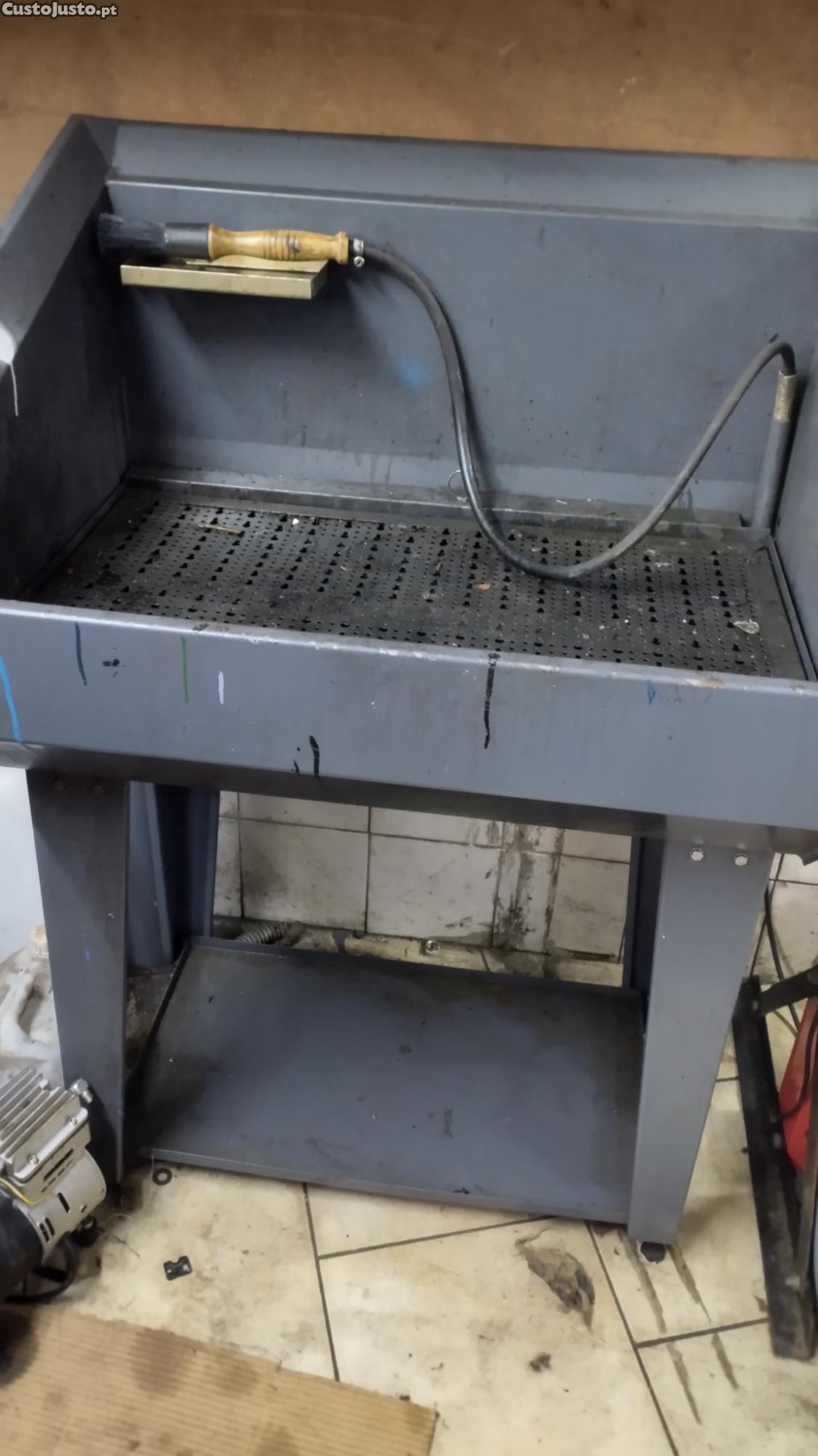 Maq. De lavar peças com bomba e pincel bastante robusta com 3 decantadores em muito bom estado