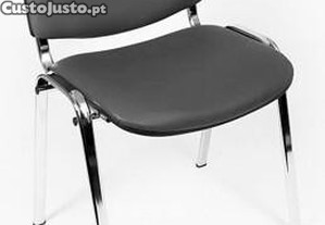 Características: Estofo em pele sintética ou tecido com espuma 4 cm espessura, estrutura tubo oval, garantindo uma grande robustez e durabilidade, tornando-se uma excelente solução para salas de reunião, salas de formação, escolar, espera de visitante, escolas, igrejas, multiusos para a sua empresa, Cadeira fixa 4 pés multiusos embalada, cadeira visitante estrutura metálica pintada a preto empilhável revestida a pele sintética ou tecido com a cor a sua escolha, cadeira sala de reuniões, cadeira visitante, cadeira em polipropileno (plástico) e em contraplacado de madeira.