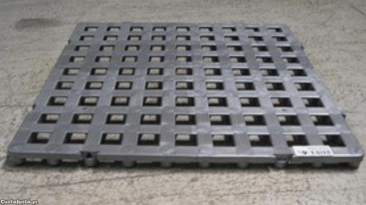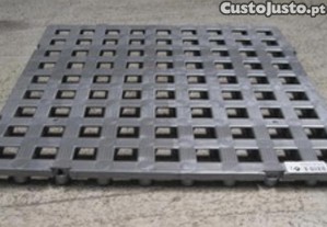 Estrado plástico muito resistente material Novo Cor: Cinzento Dimensões: 500x500x23,5mm ideal para Balneários, Piscinas, Balneários Industriais, Laboratórios, Hospitais, Câmaras frigoríficos, matadouros industriais, Lavandarias, indústria química, isolamento de camiões. São unidos uns aos outros por um simples encaixe manual, Estrado de plástico 500 x 500 x 23,5mm. 4 unidades faz 1 metro quadrado, Anti deslizante, higiénico, facilmente lavável com água e detergentes.