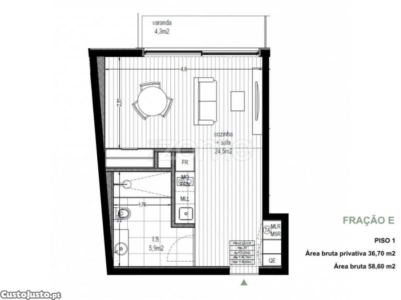 - Sala e cozinha em open space;
