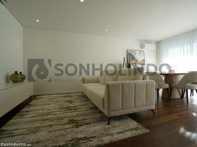 Acabamentos de qualidade superior, carpintaria com portas até ao tecto, sendo na zona íntima lacada a branco e na zona social em nogueira.